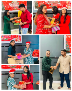 Santaโs presence added a magical touch, especially during the gift exchange and cake distribution ๐๐โmoments that symbolized sharing, appreciation, and celebration of togetherness.