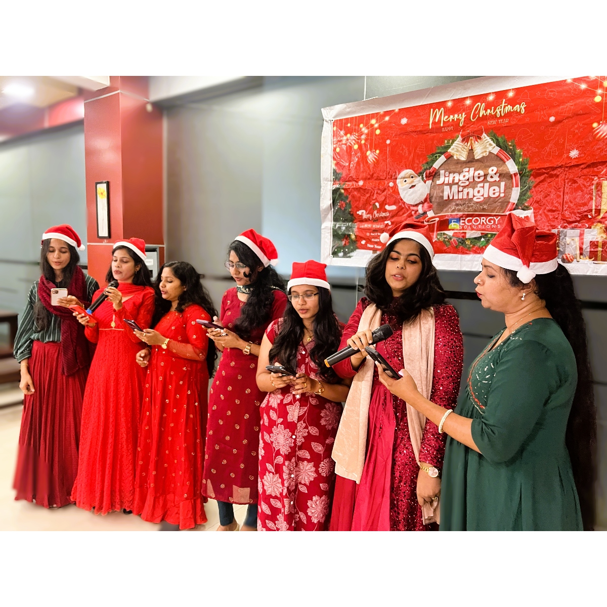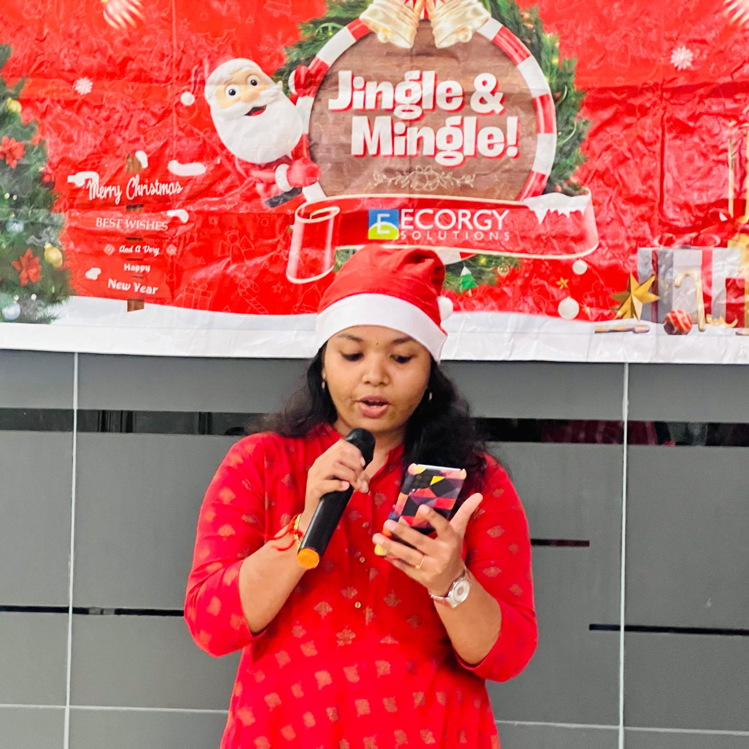The celebration began the moment one stepped into our beautifully decorated office. The stunning Christmas tree, glowing lights, and thoughtfully designed festive dรฉcor transformed the workplace into a warm holiday haven ๐โจ. Every corner reflected the enthusiasm and collective effort of our teams, showcasing how celebrations at Ecorgy are by the employees, for the employees, and proudly sponsored by the company ๐.